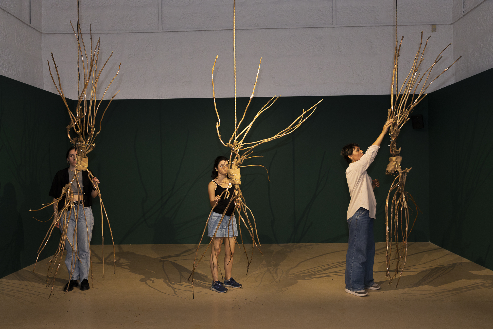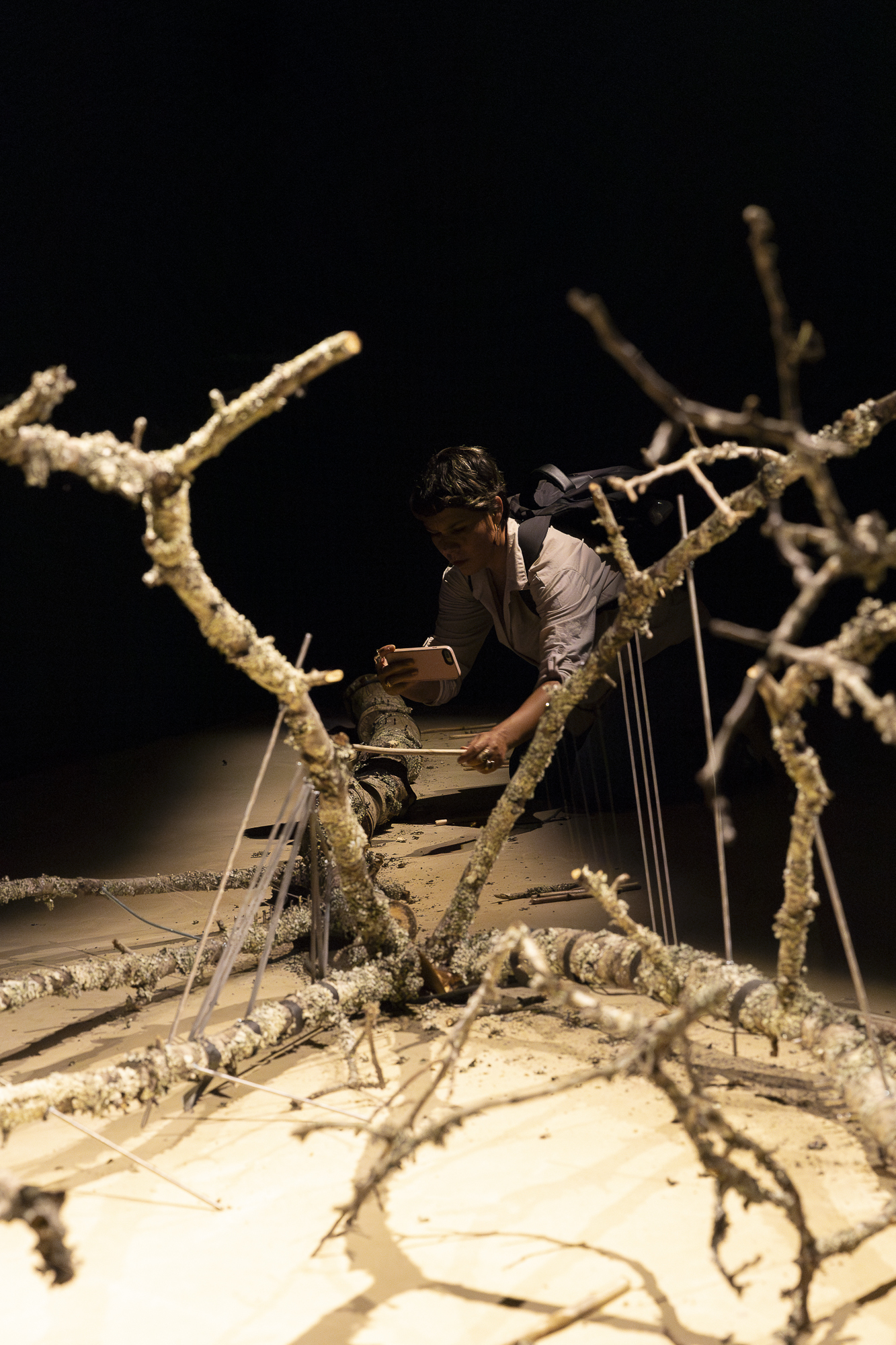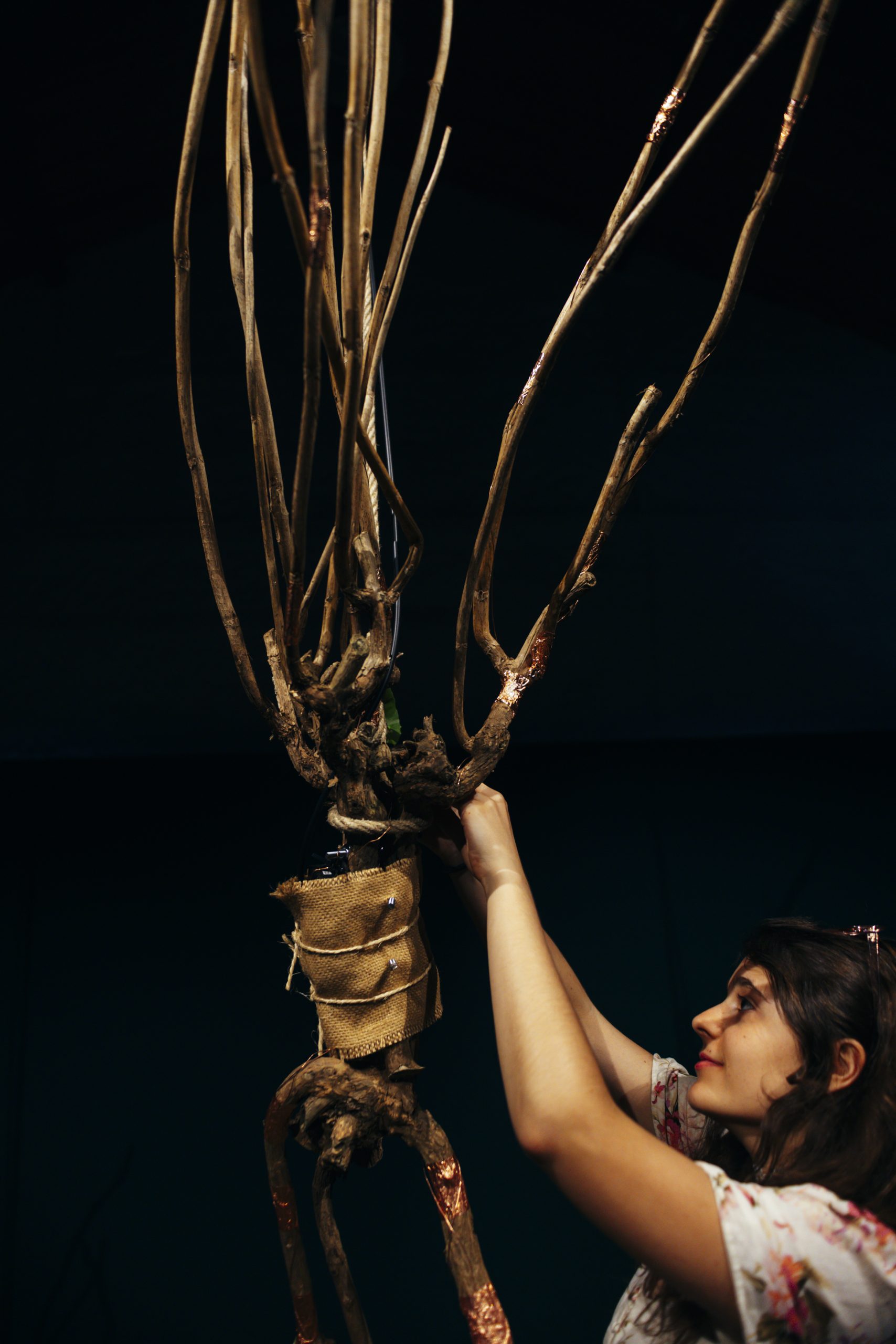 CORPO | uma topografia sonora (BODY | a sound topography) is an installation that crosses and combines different materials and sounds from the animal, plant and mineral worlds to create sound sculptures that are played by the audience. Developed from natural materials retrieved from Serralves Park, the installation functions as a whole, albeit divided into three distinct parts, each representing a scenic space in which the spectator is the protagonist. Some elements only truly manifest themselves through the spectator’s actions. “I know, words have other meanings, but when I say body, I mean the cosmos” Alberto Carneiro BODY | a sound topography is above all a work of listening. Before it manifested itself as a movement and creation, it knew how to be a conversation with the gardeners and other staff members of Serralves Park. Over the course of several artistic residencies in the Park, materials from cuttings and prunings were chosen in order to create the installation’s objects, sounds and images — ranging from the concrete to the dreamlike and symbolic. “There is no opposition between the living and the non-living. Every living being is not only in continuity with the non-living, but it is its extension, its metamorphosis, its most extreme expression. Life is always the reincarnation of the non-living, the bricolage of the mineral, the carnival of the planet’s telluric substance.” in Metamorphoses, by Emanuele Coccia BODY | a sound topography is about how the atoms in our bodies derive from distant stars, and from the bodies of extinct animals and unknown plants. We are made of the earth that we call a planet. Our bodies will be part of other existences that haven’t yet emerged, but are already part of our own. “BODY” is a poetic game that renders matter audible and vibration visible. Trees with a woman’s voice, roots with a heartbeat, branches that whisper words in our ears.