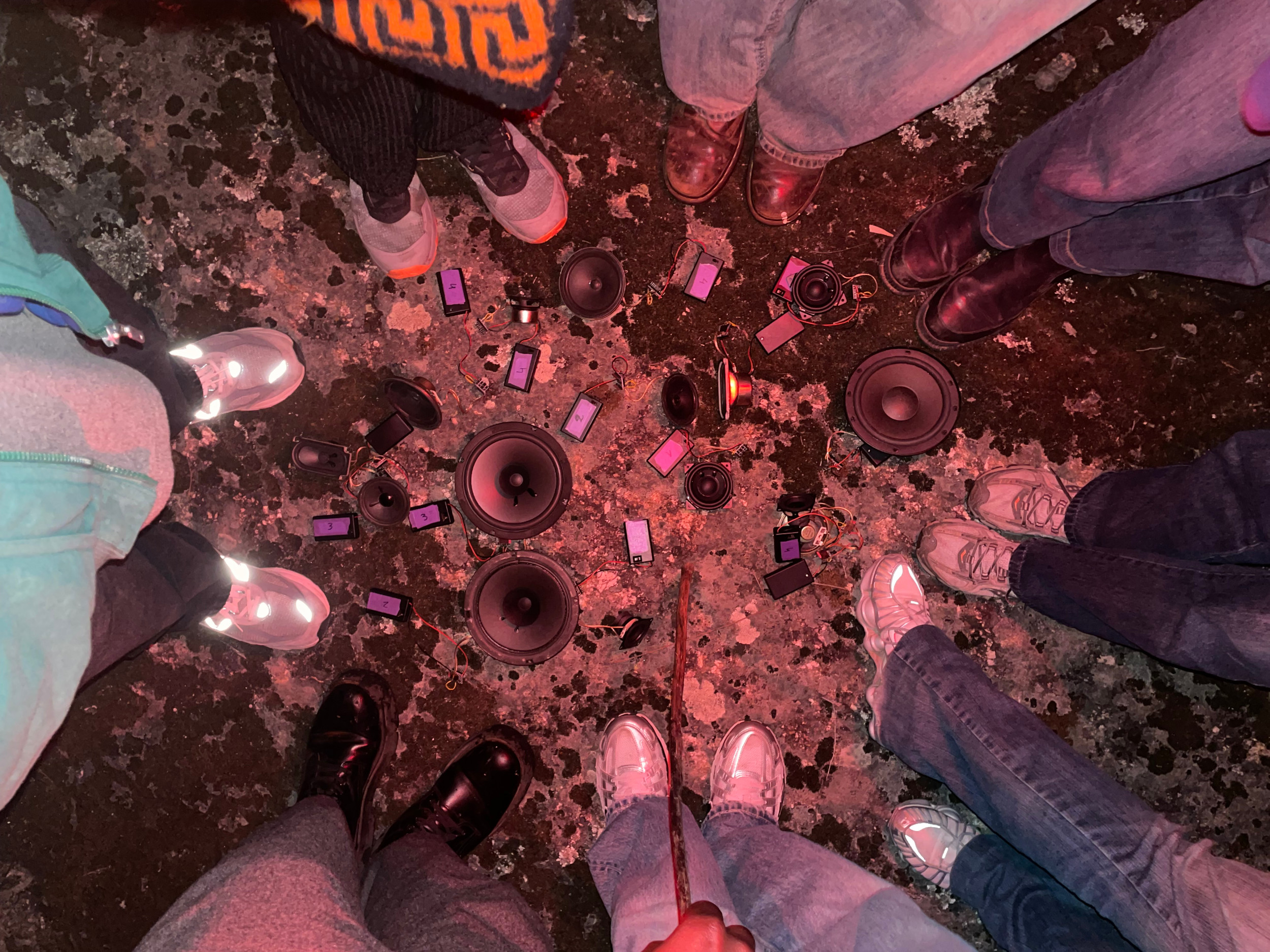Multitrack sound piece for autonomous loudspeakers activated by several hands.